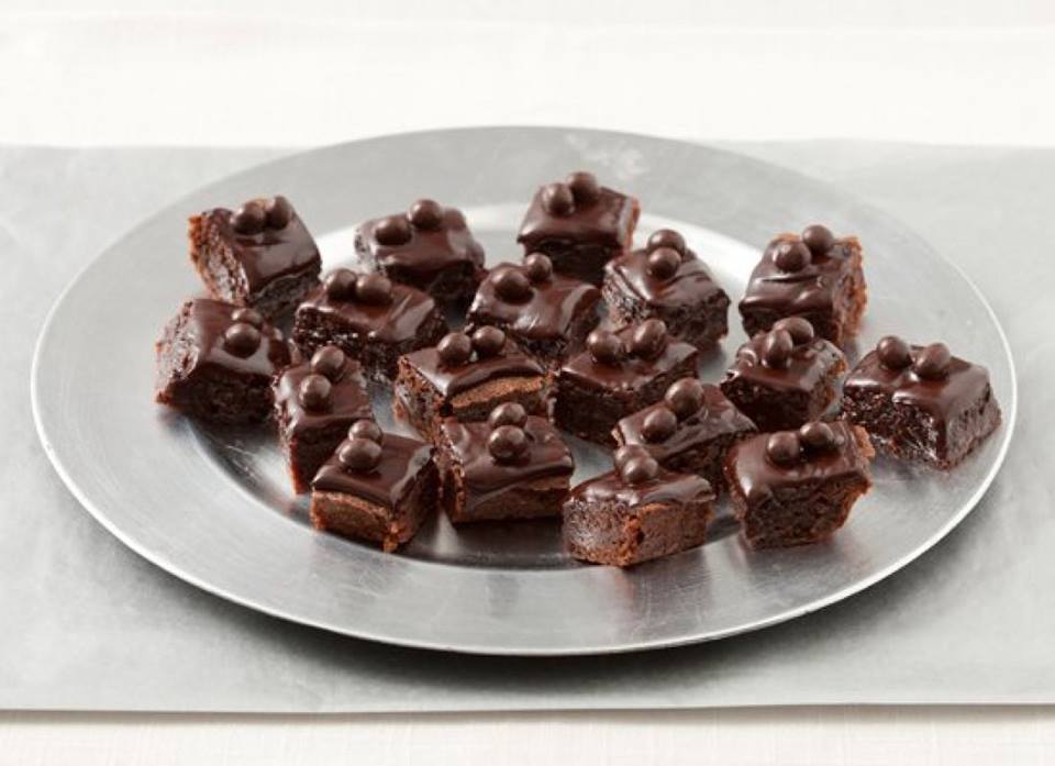 * Brownie layer can be made 3 days ahead (without glaze) and kept chilled in 1 piece wrapped well in foil. Bring to room temperature before glazing, about 2 hours. Glazed and cut brownie bites can be made 1 day ahead and kept, loosely covered, at room temperature.
